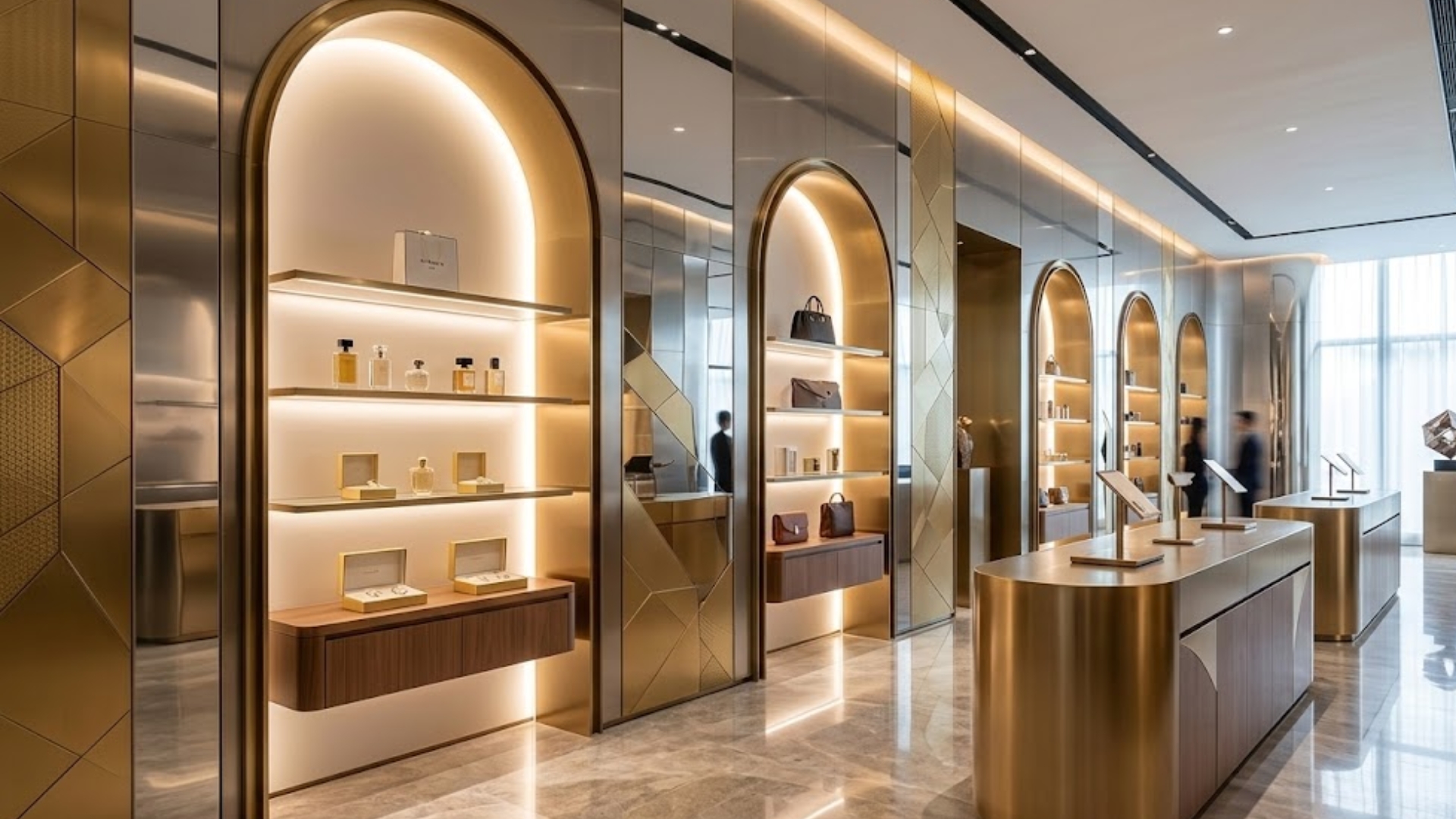 We specialize in creating immersive brand experiences through the use of premium metal finishes and integrated lighting systems. Our team excels at producing arched PVD-coated display units, backlit shelving systems, and seamless metal wall claddings that define the luxury retail sector. By combining advanced materials like gold-toned stainless steel with precision-cut glass and wood, we provide a turnkey solution for commercial spaces that demand a sophisticated, modern identity.